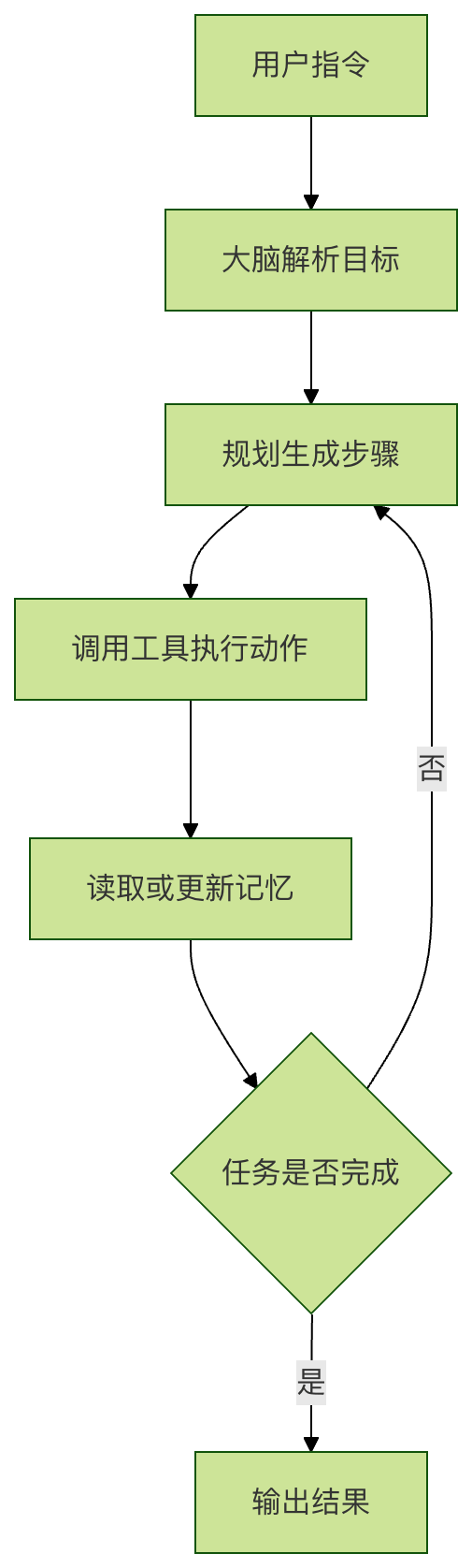 - 🧠 大脑:听到指令,分析出两个任务:查天气、发提醒。