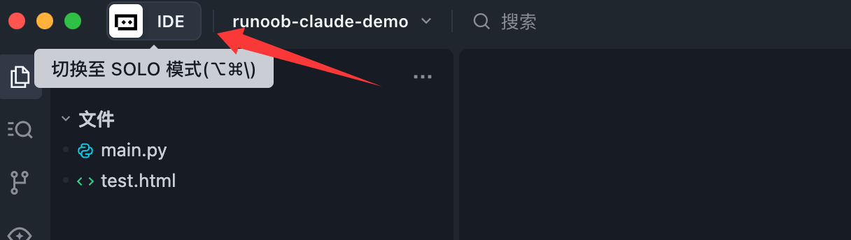 安装完 Trae 后,打开 Trae,点击界面左上角的模式切换按钮,即可将 TRAE 切换至 SOLO 模式。