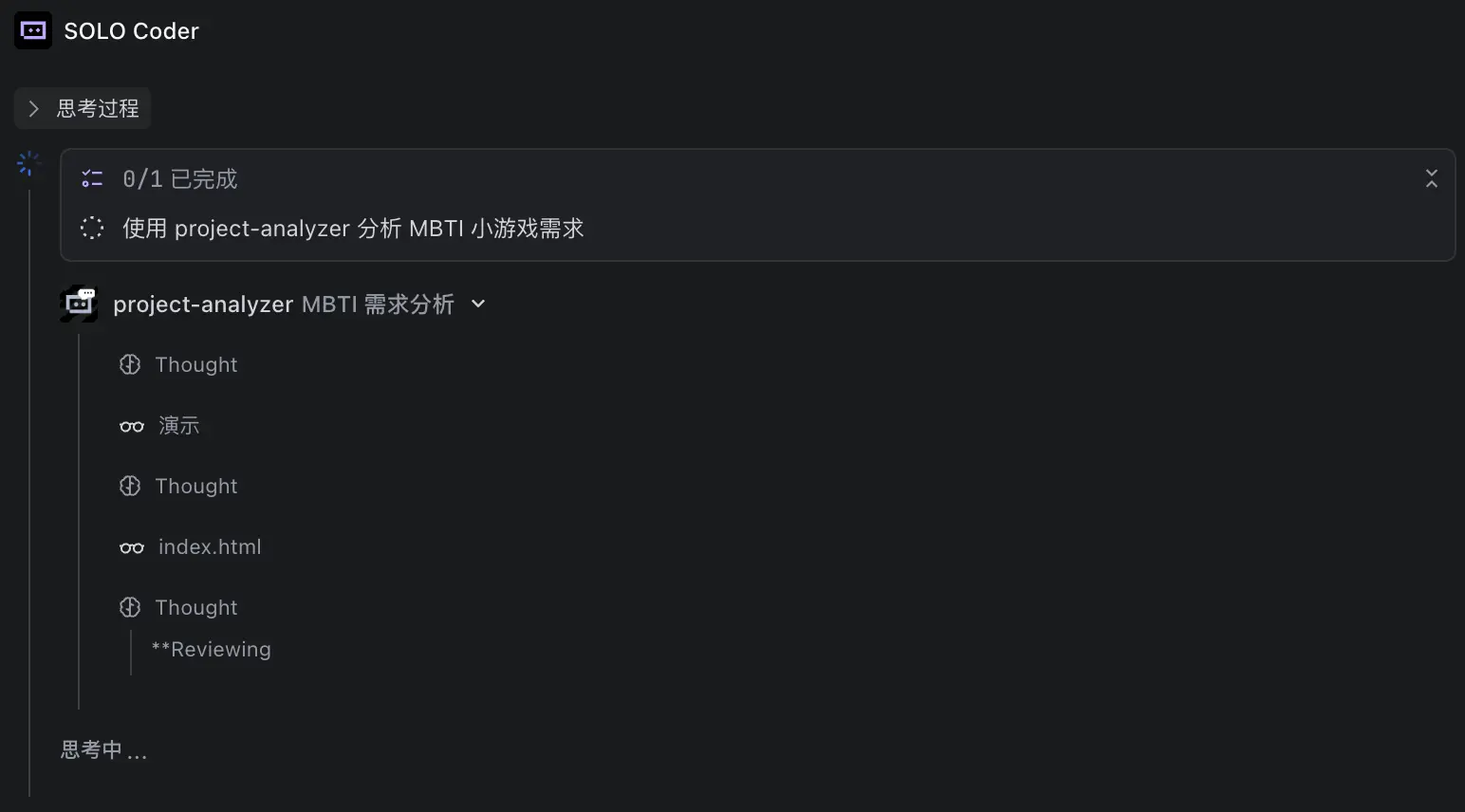 开启后,SOLO Coder 收到需求会先进行分析与任务规划,经你确认后再逐步骤执行。