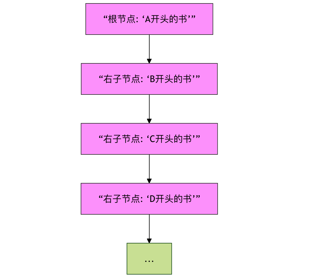 想象一下,你有一家图书馆,使用 BST 来按书名排序存放书籍。如果你按字母顺序一本一本插入(例如:A..., B..., C...),这棵树会退化成一条链(类似于链表)。这时,查找一本书的时间会从理想的 O(log n) 恶化到最差的 O(n),效率极低。