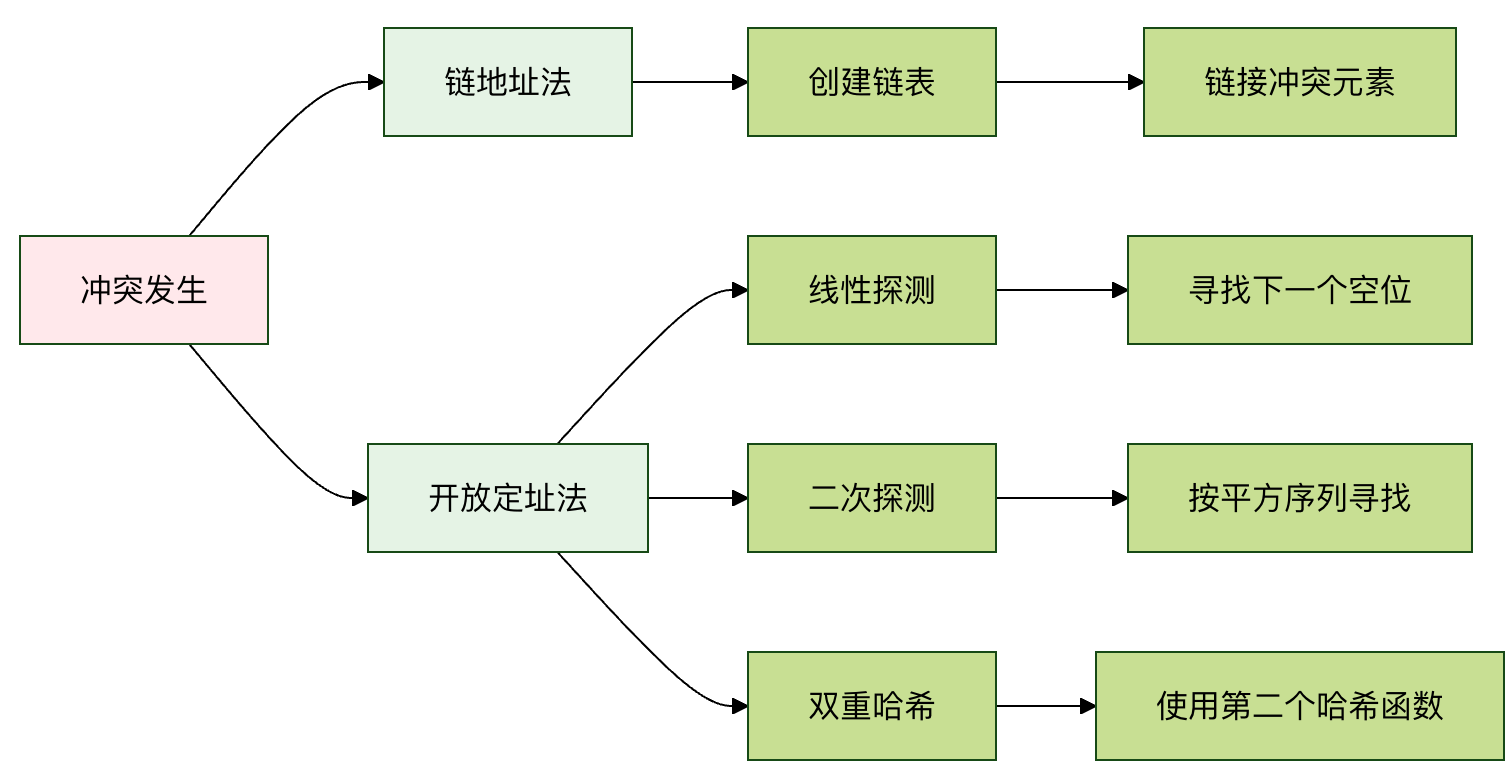 关键挑战: 哈希冲突——不同的键映射到同一索引。