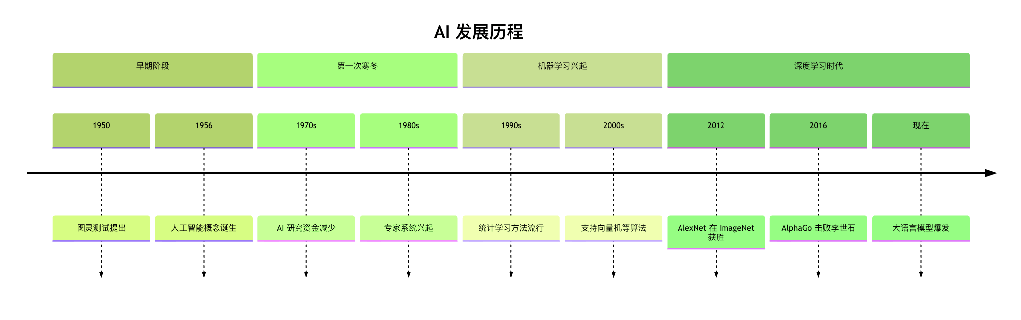 - 深度学习时代(2010s-至今):自动学习特征,处理更复杂的问题