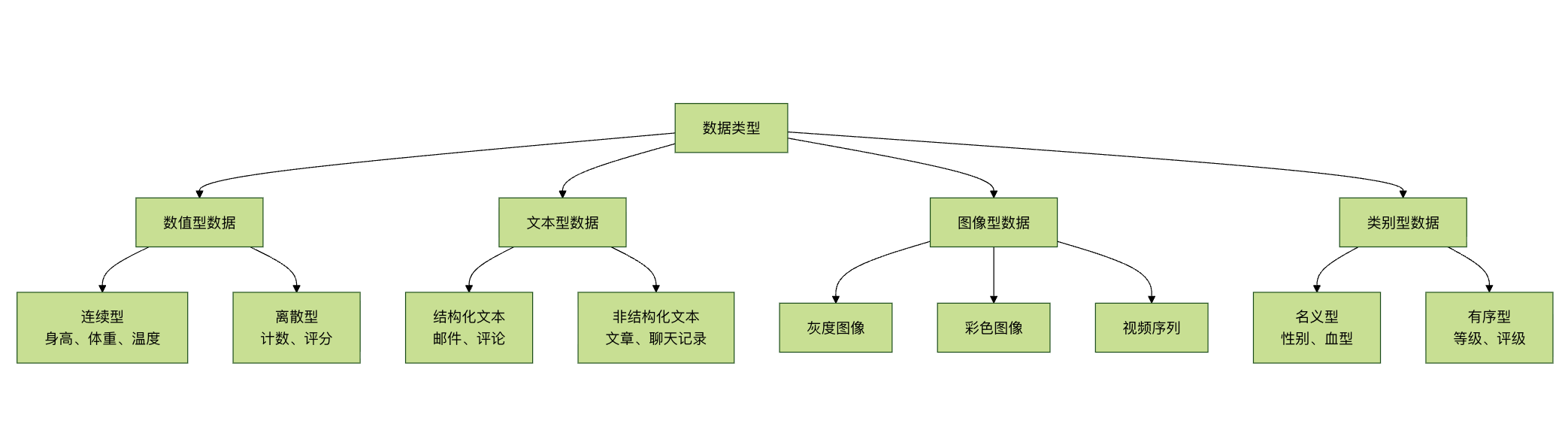 数值型数据就像尺子测量的结果,可以进行数学运算,是机器学习中最常见的数据类型。