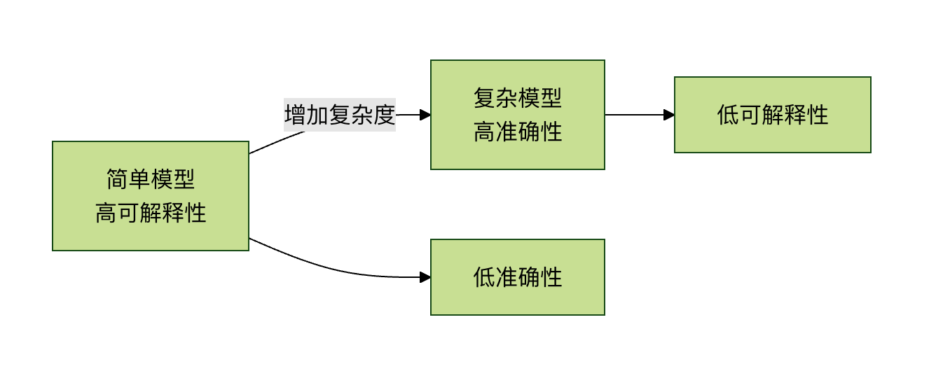 通常,模型越复杂、性能越好,可解释性就越差。这被称为 准确性-可解释性权衡