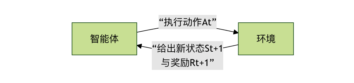 • 环境:环境是智能体所处的外部世界。它接收智能体的动作,并给出两个反馈:新的环境状态和本次动作带来的即时奖励。