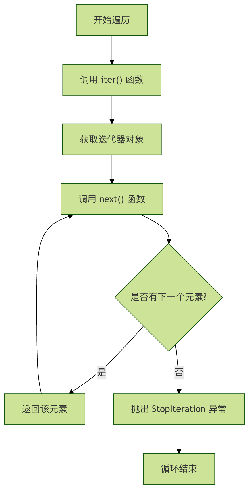 | 示例 | 列表、元组、字典、字符串 | iter() 返回的对象 |