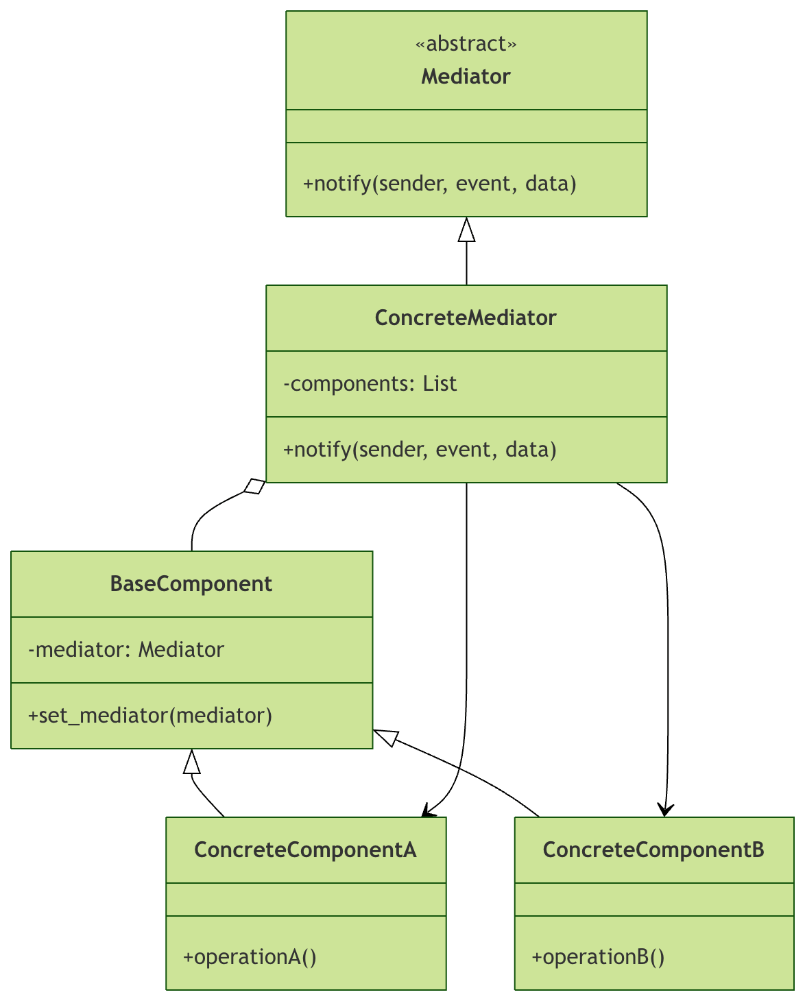 | 中介者可能变得复杂 | 随着交互逻辑增多,中介者可能变成上帝对象 |
