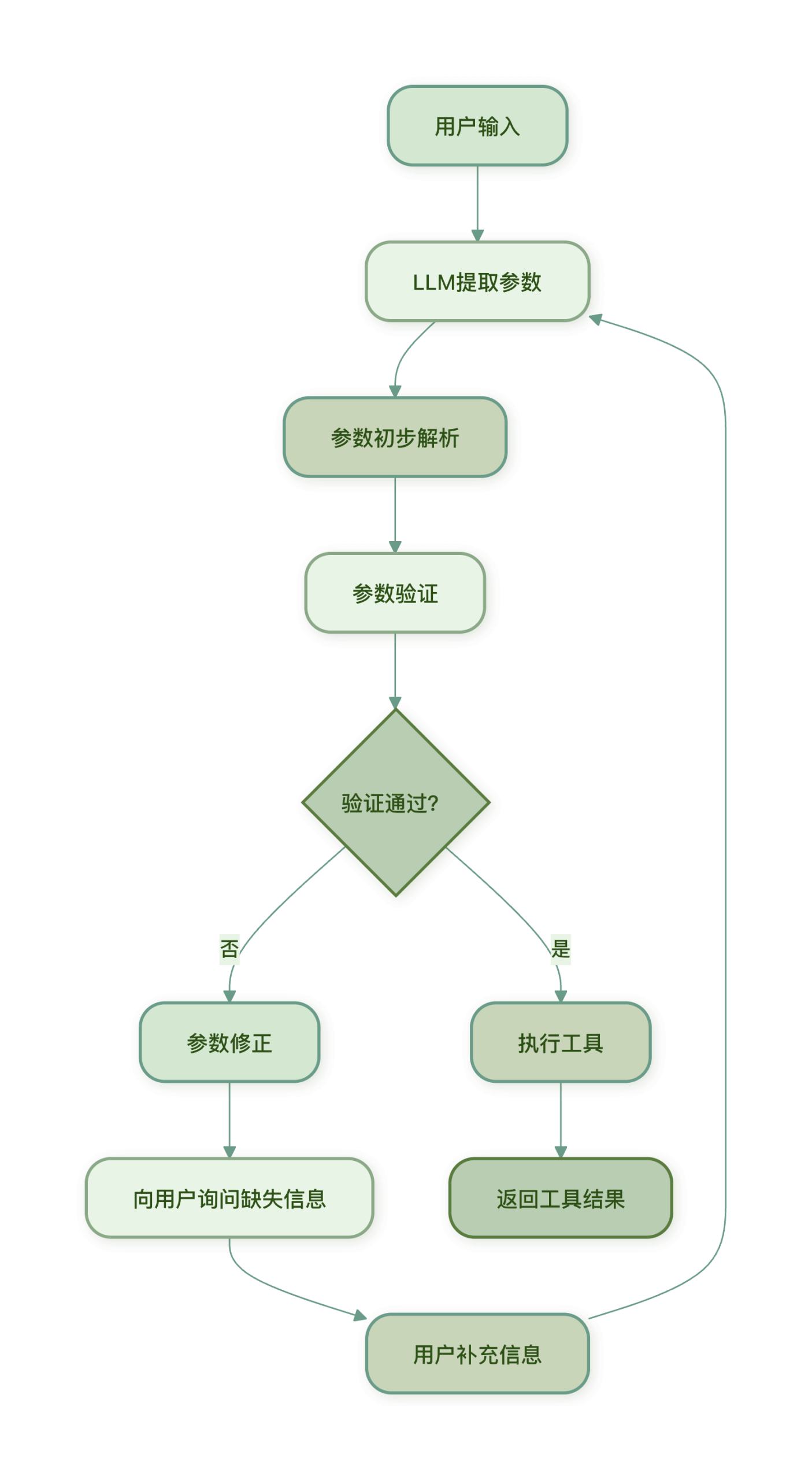 - 参数提取:LLM 从问题中提取工具所需的参数