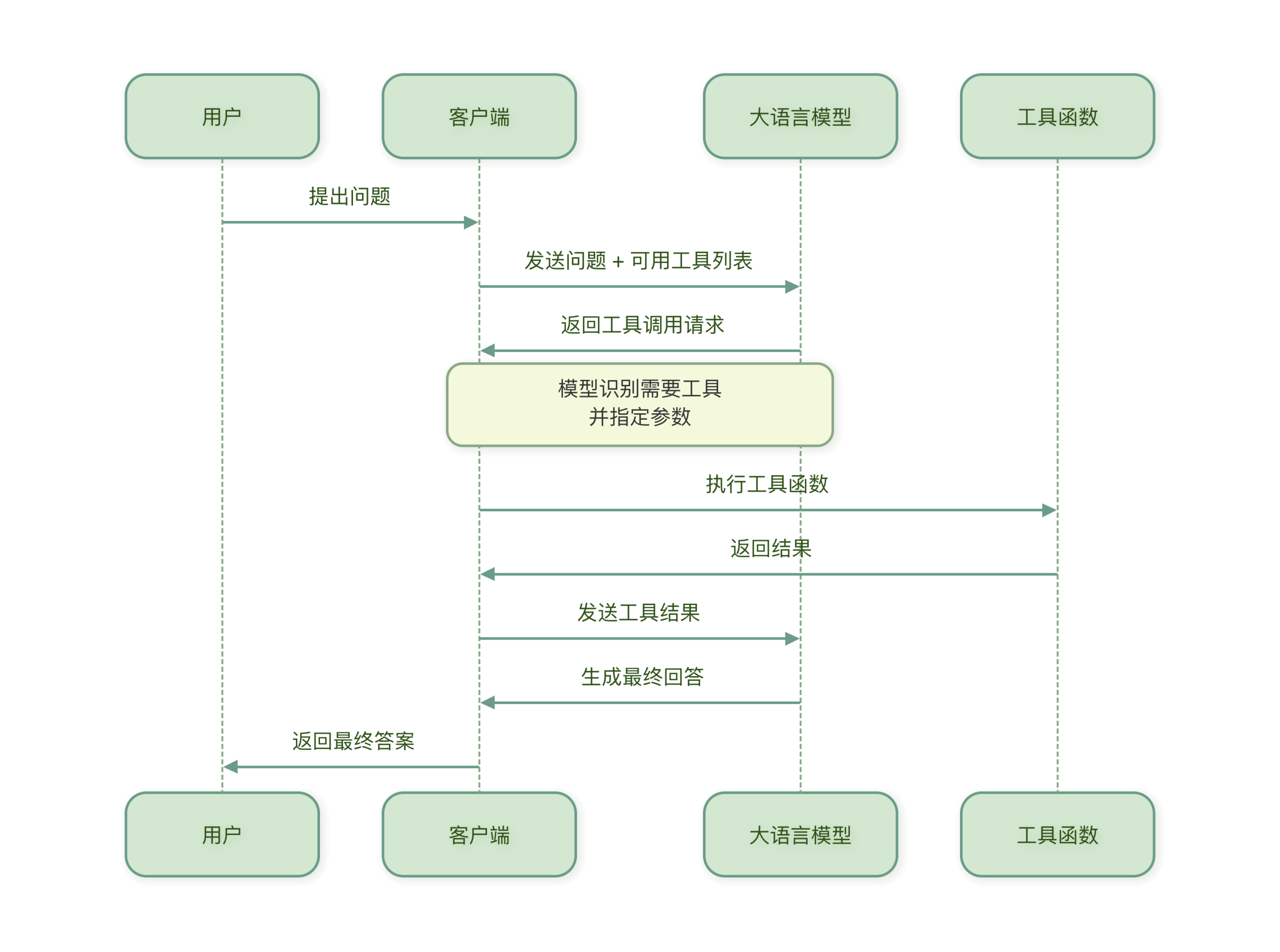 Function Calling(函数调用)允许模型决定何时调用工具、调用哪个工具,以及传递什么参数。