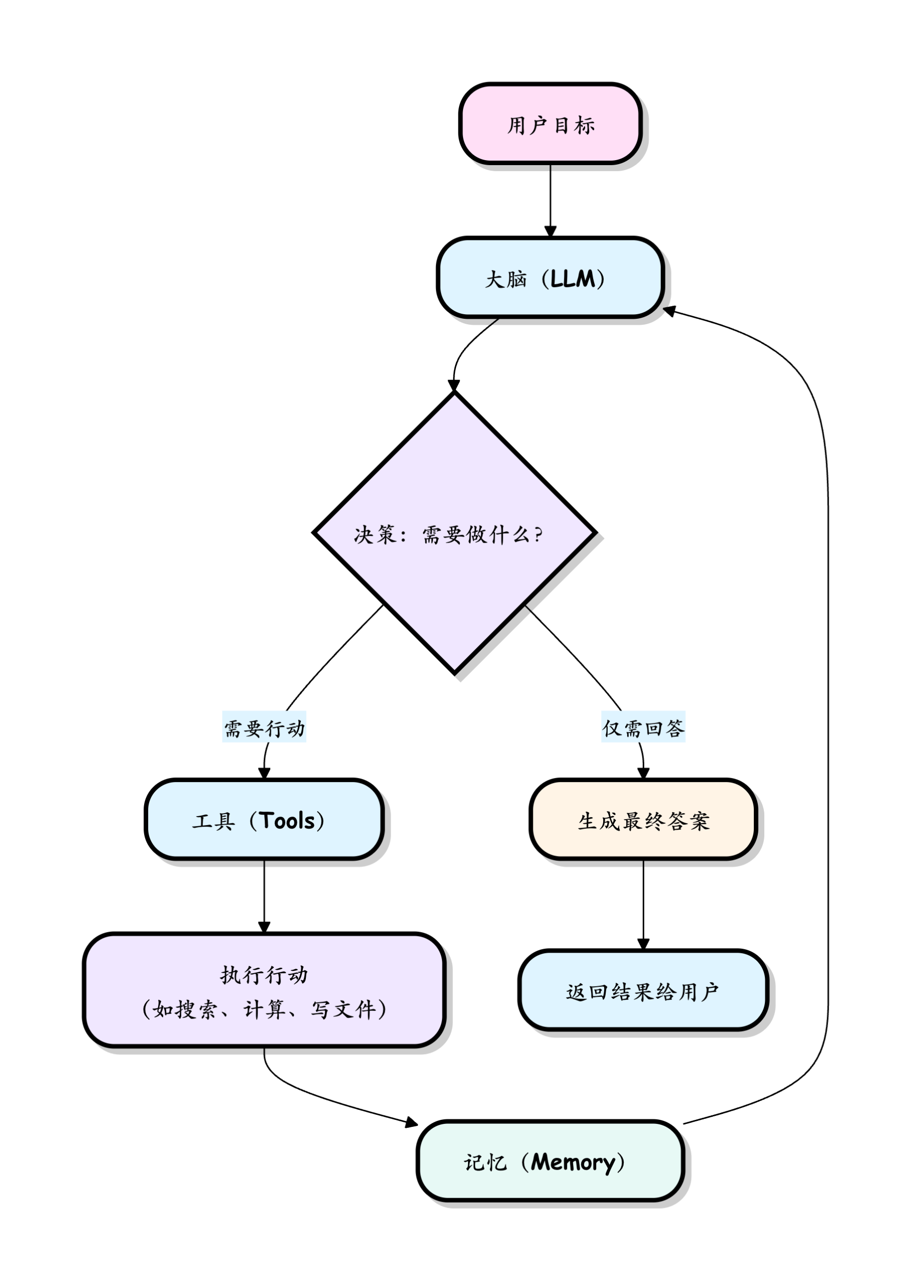 这个 思考 -> 行动 -> 观察 -> 再思考... 的循环,就是 AI Agent 自主完成复杂任务的核心动力机制。