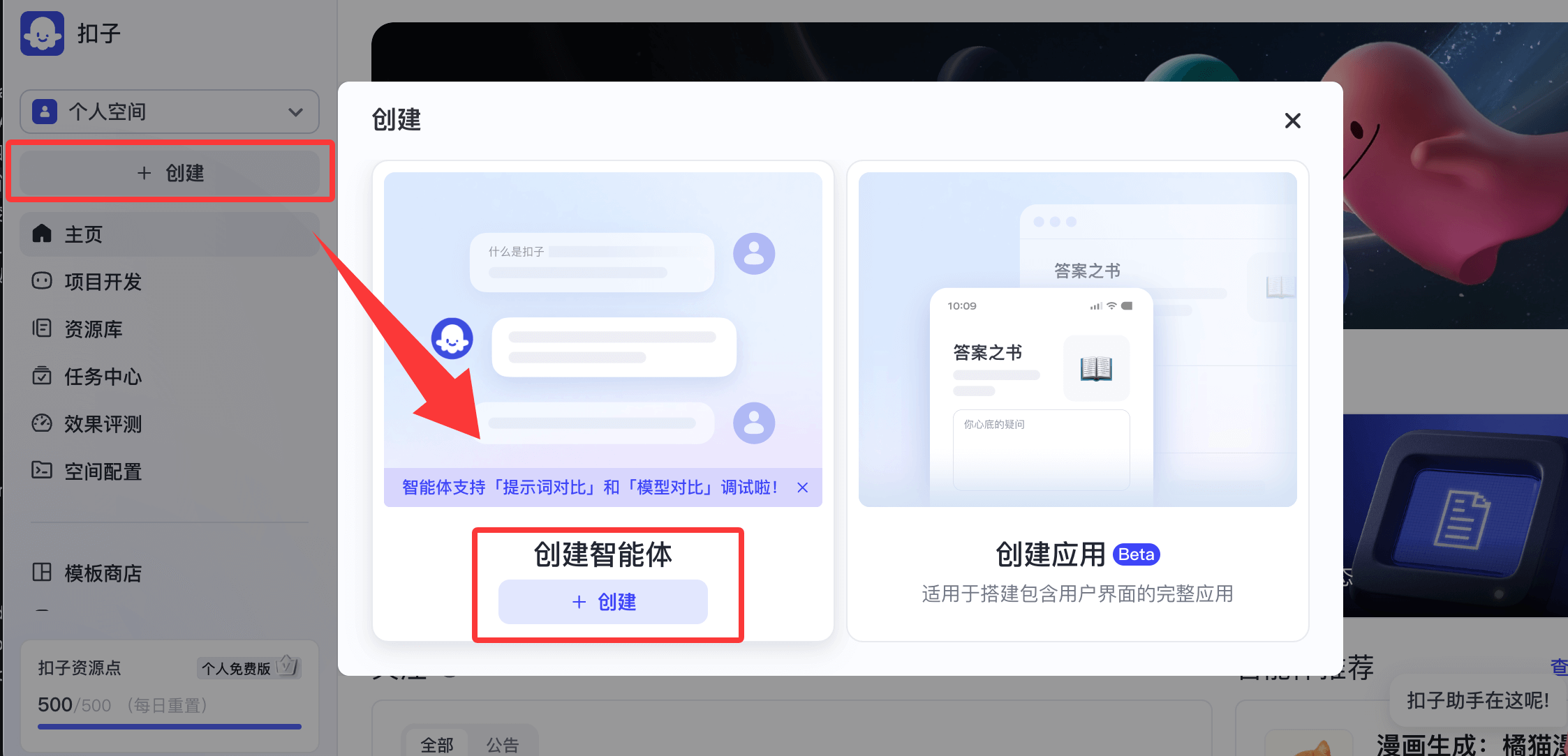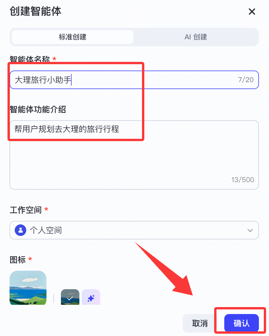 - 点击创建智能体。