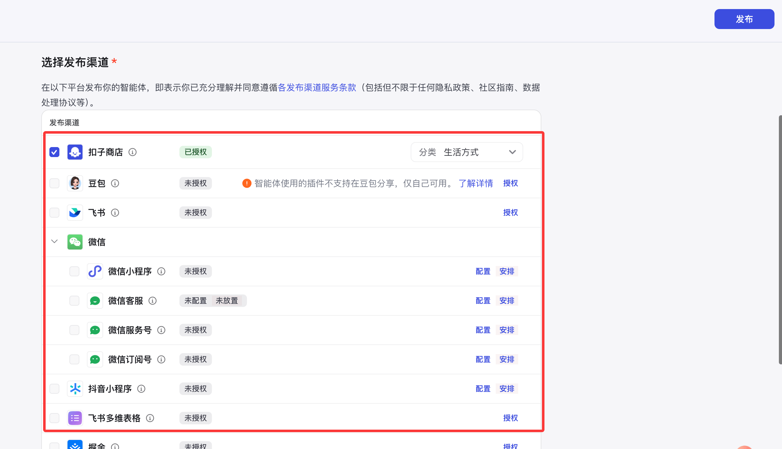 可以发布到 豆包、飞书 或者 微信公众号。