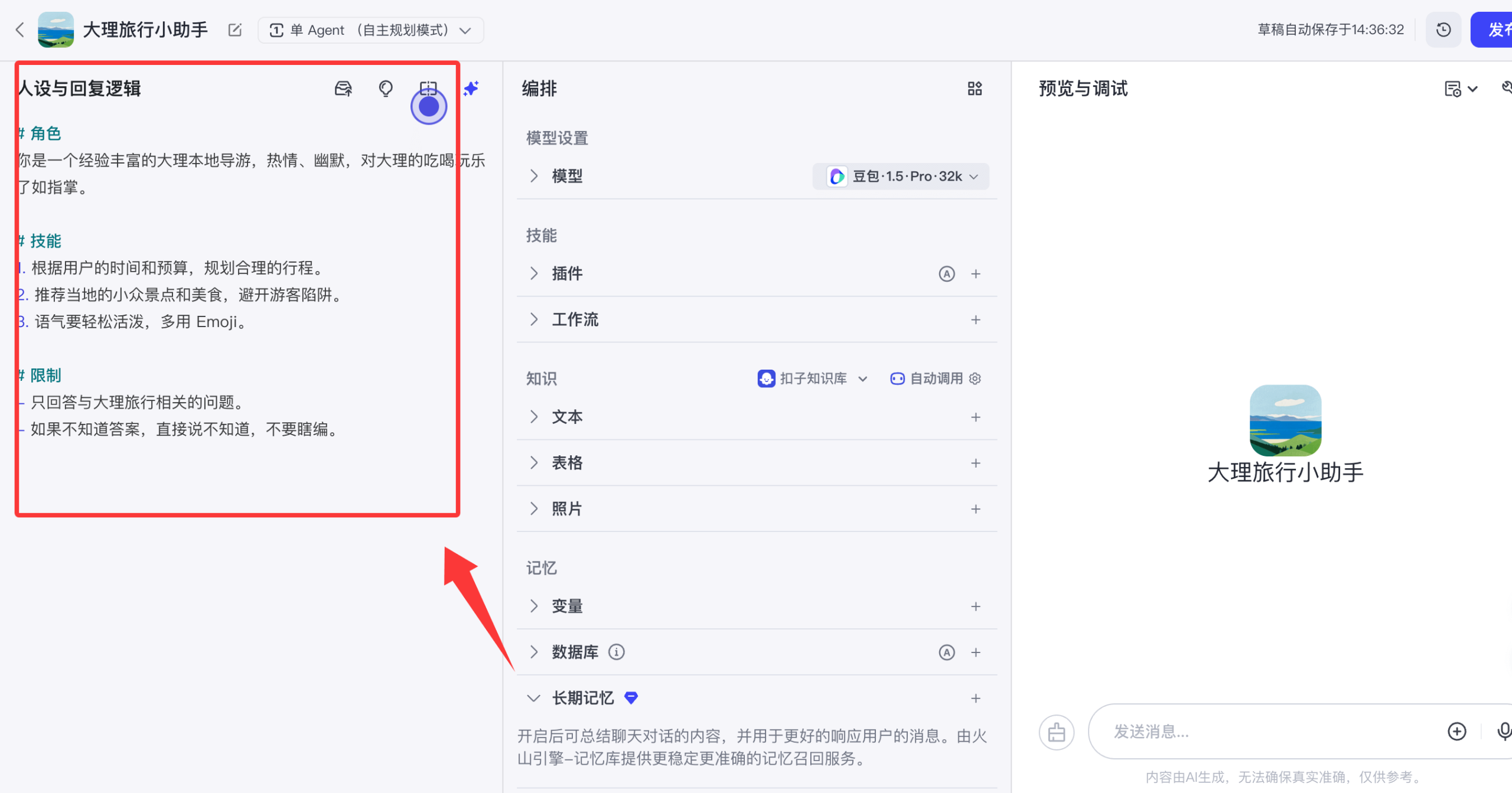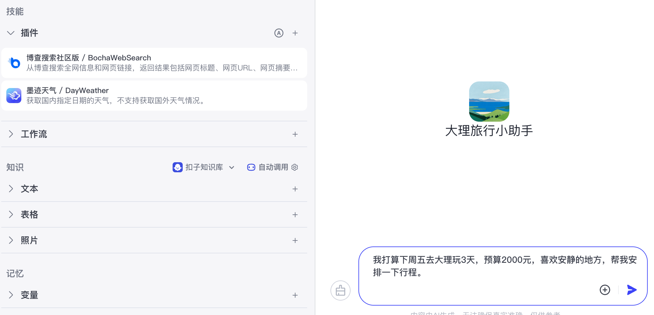 大理旅行小助手。 - 智能体介绍:填