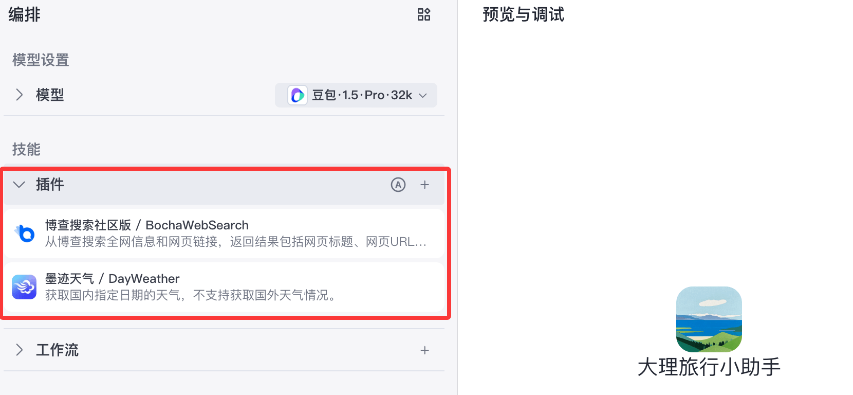 我们要做的智能体叫 大理旅行小助手,它的功能:查天气、找景点、安排路线。