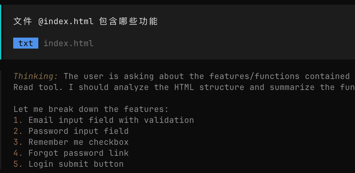 接下来大模型就会开始思考,并创建登录页面: