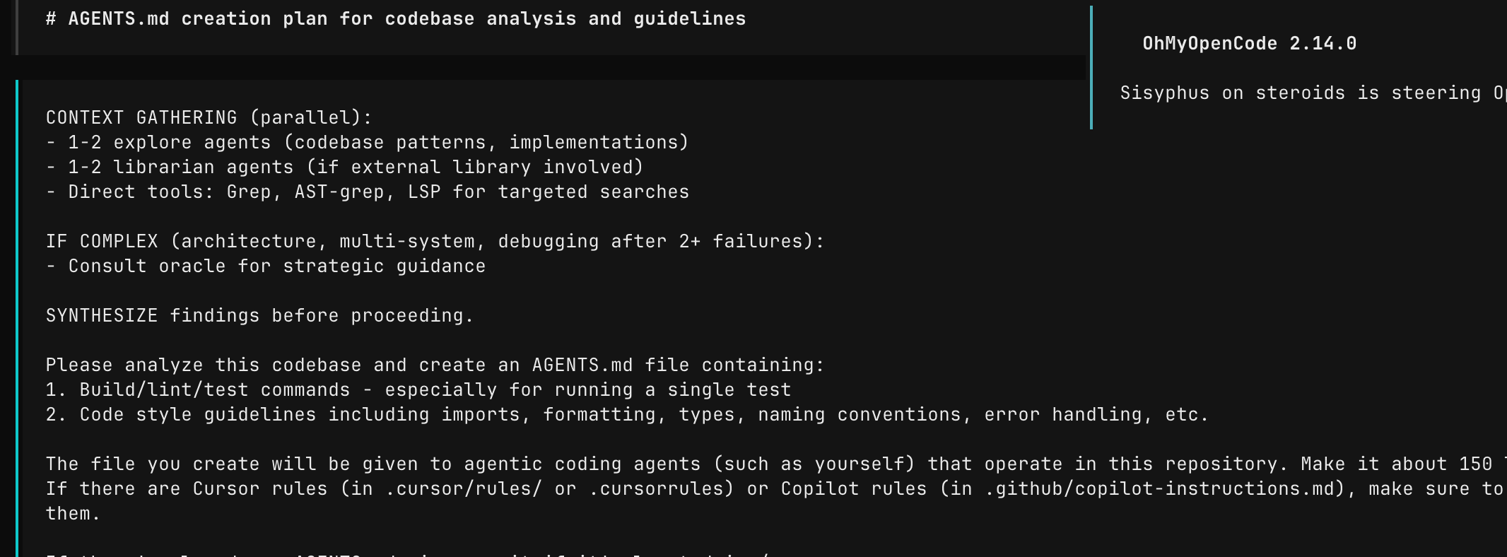 上下文感知:自动分析项目结构,生成 AGENTS.md 指南。