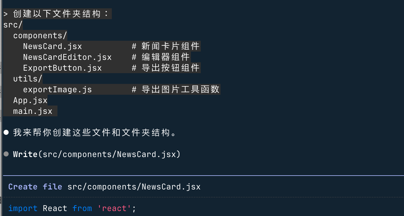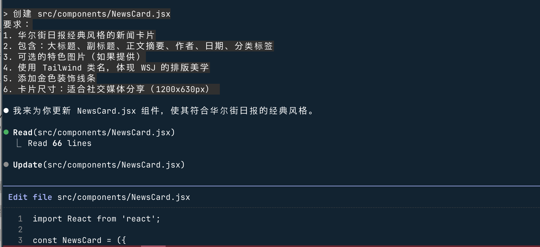 Claude 生成 NewsCard.jsx: