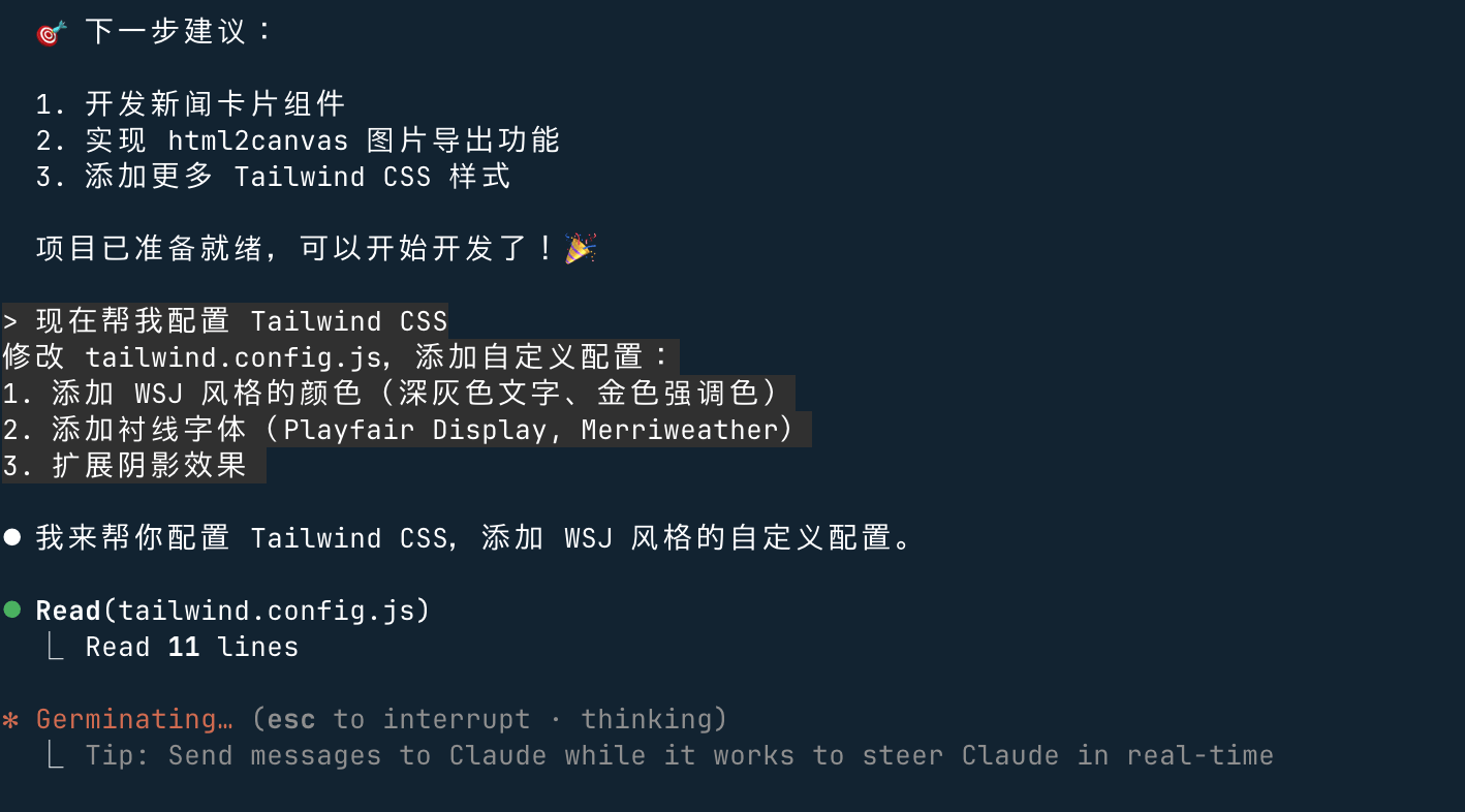 Claude 会生成 tailwind.config.js: