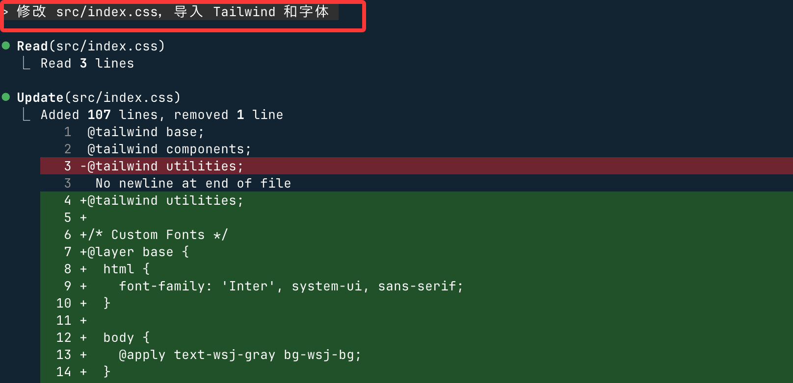 修改 src/index.css,导入 Tailwind 和字体