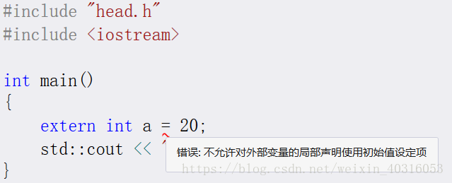 为什么会这样呢?因为 extern int a; 只是声明而不是定义,声明是不会为变量开辟内存空间的,自然无法对其进行初始化的操作。