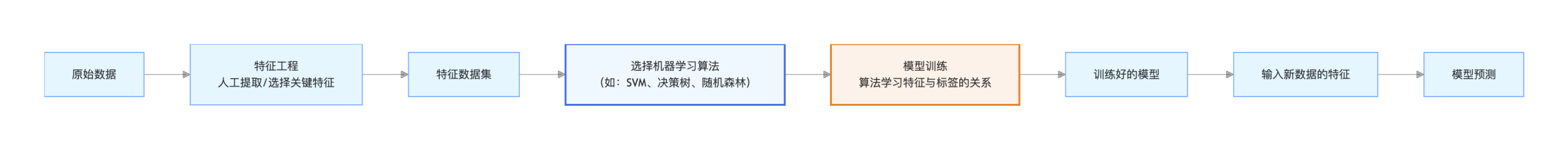 让我们通过一个流程图来直观理解传统机器学习的工作过程: