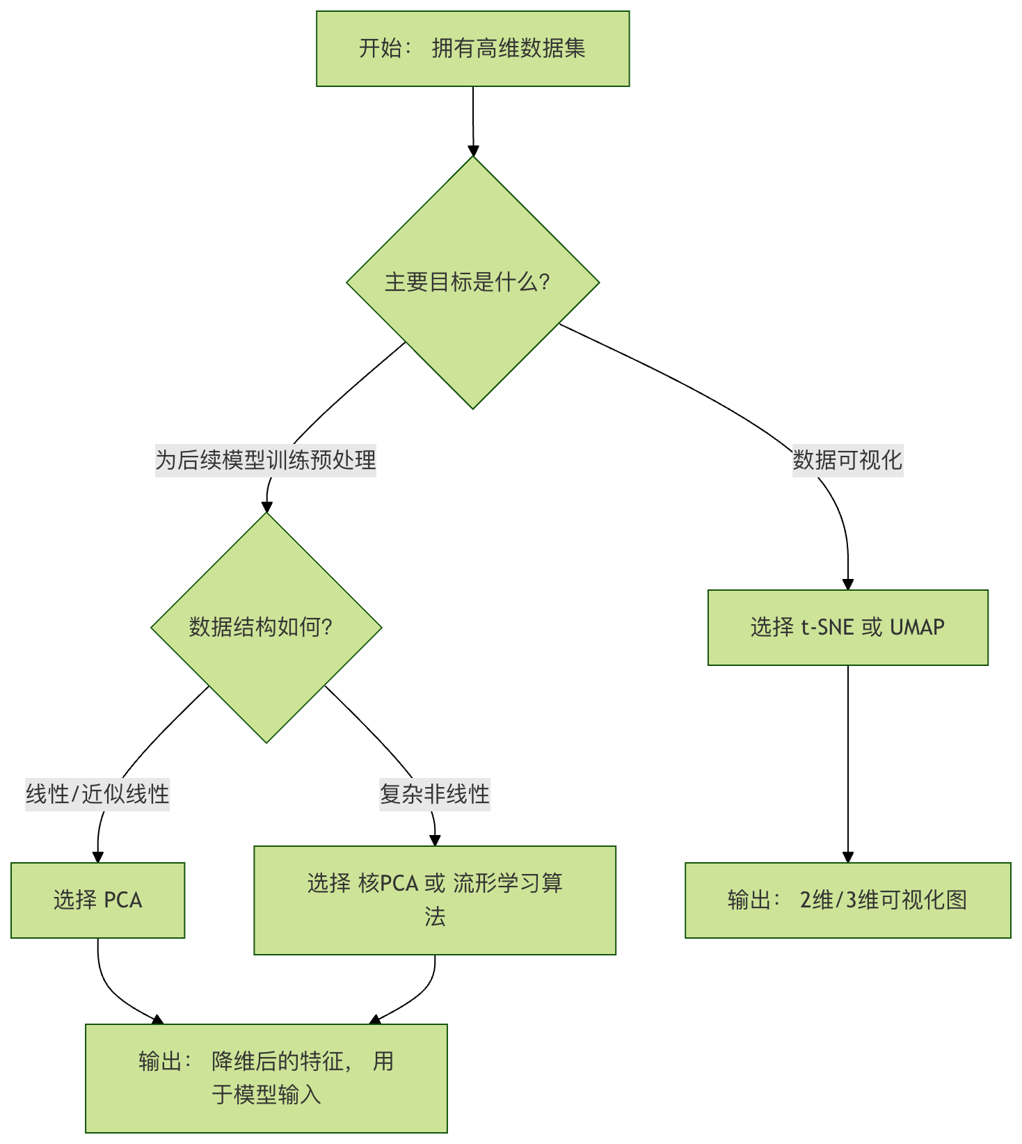 - 明确目标:是为了可视化,还是为了给下游模型输入更精炼的特征?
