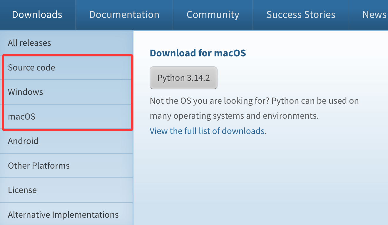 - 打开 WEB 浏览器访问 https://www.python.org/downloads/source/