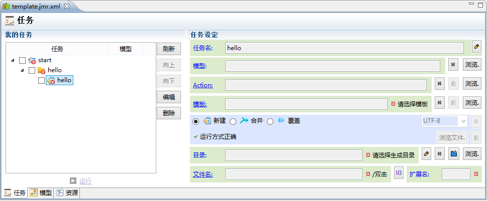 有了模板后,我们现在可以开始配置任务了。