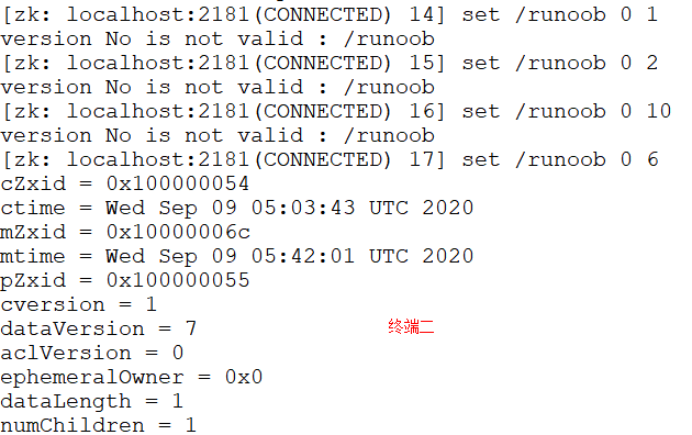 $ set /runoob 0 1 $ set /runoob 0 2 $ set /runoob 0 10 $ set /runoob 0 6